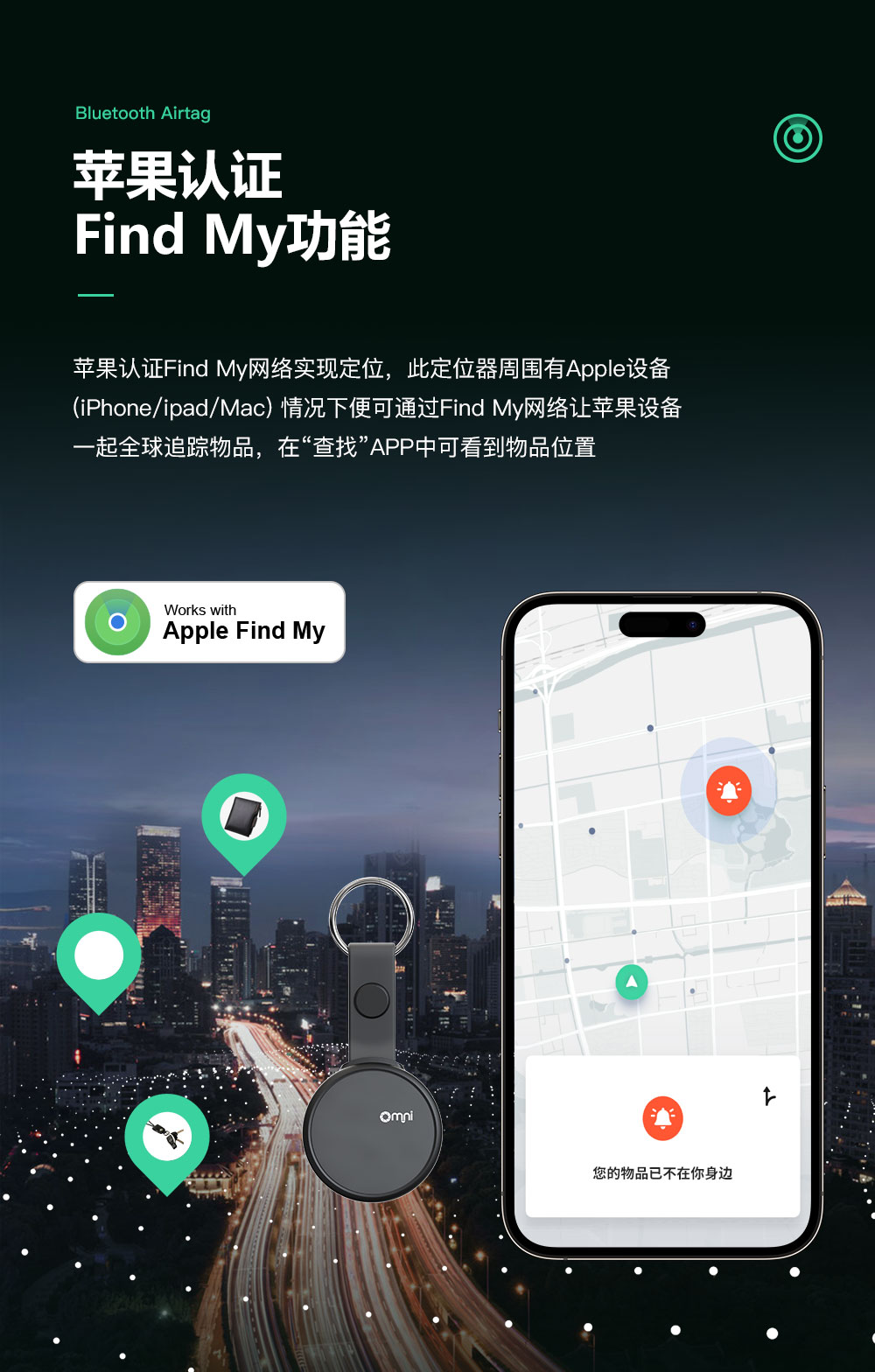 防水功能:歐米藍(lán)牙物品定位器防水等級(jí)達(dá)到IPX6防水,可以小雨中正常使用,具有更好的耐用性。